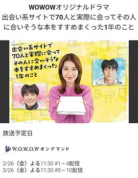 作为书店店员的工作也随着时代的发展,纸质书不像想象的那样畅销,在书店担任店长的花田菜菜子(泷本美织饰)又处在与丈夫健(竹财辉之助饰)离婚前夕,人生跌入低谷。这样的她注册了交友网站AU×AU,在简介上写的一句话是:“请允许我向您推荐适合现在的你的书。”实际遇到的人都是个性丰富的魑魅魍魉。不管男女,都是有一两个怪癖的人。在经历了无数次的相遇之后,菜菜子开始注意到与马合得来、定期见面的笑容可爱的映像作家远藤(森崎温饰)。30多岁就止步不前的菜菜子遇到了从未遇到过的人,在认真地向每个人介绍书籍的过程中,她会怎样重新审视自己,做出怎样的人生抉择呢?